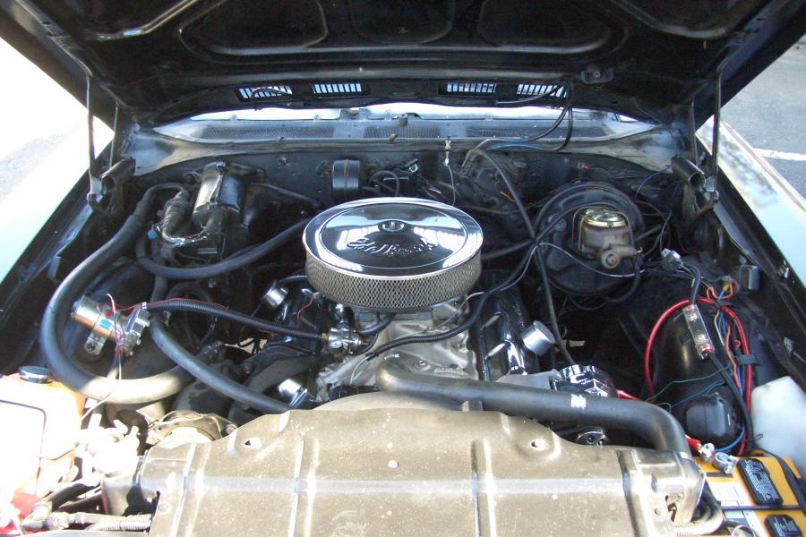 350 engine, TH400 transmission, Chevy 12-bolt 3:73 posi, HD suspension & swaybars, disc brakes, buckets & console, Black paint w/ white power top.